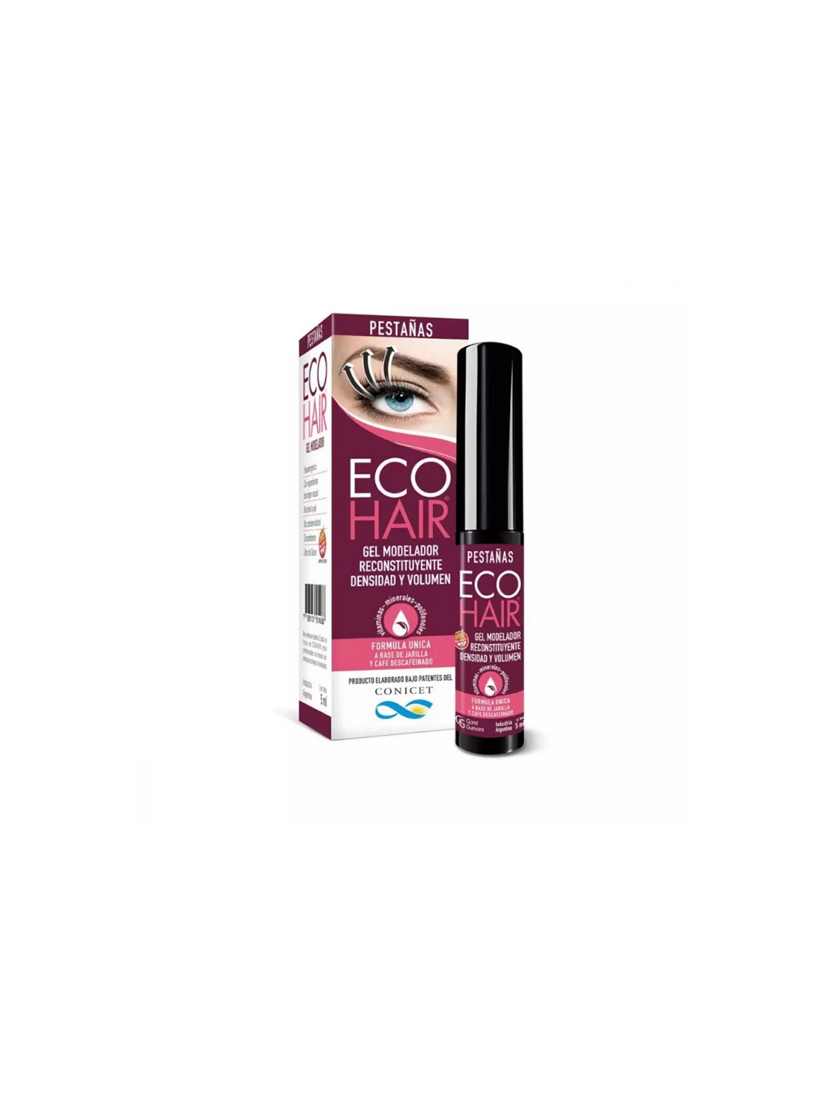 GEL MODELADOR RECONSTITUYENTE DE PESTAÑAS ECOHAIR, producto cosmético desarrollado a partir de Extractos de Jarilla orgánica (Larrea divaricata) y Café descafeinado (Coffea arabica). El extracto de Jarilla tiene propiedades antioxidantes y antiinflamatorias, además de contener vitaminas y minerales y en conjunto al extracto de café, ayudan a fortalecer y estimular el crecimiento de las pestañas.